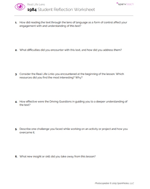 Before moving on, explain that students will explore Orwell’s treatment of language as a form of control and how he suggests that having access to an expansive language can provide freedom as they read 1984.