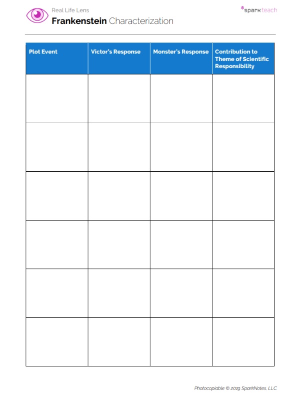 Students will compare and contrast Frankenstein’s and the monster’s actions to evaluate each character’s responses to events in the novel. Students will: