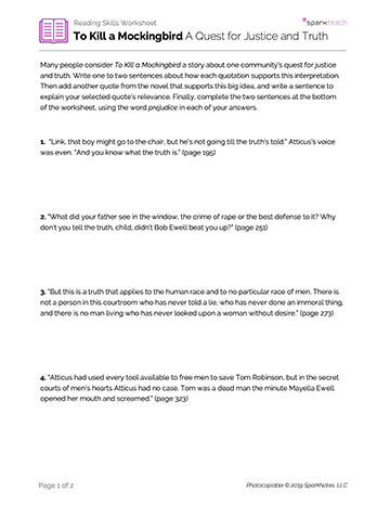 Students will analyze quotations from the text to determine how justice and truth function in the novel and how they are affected by prejudice.