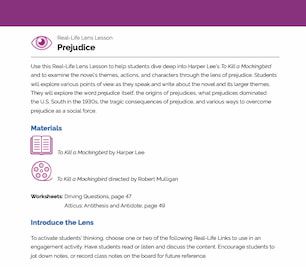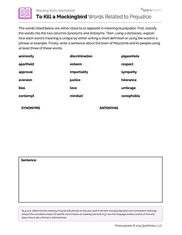 Students will identify synonyms and antonyms of the word prejudice and use them to think about prejudice in the novel.