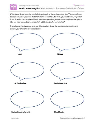 Students will write descriptions of Scout from various characters' points of view. They will use these to determine which character teaches Scout the most about prejudice.