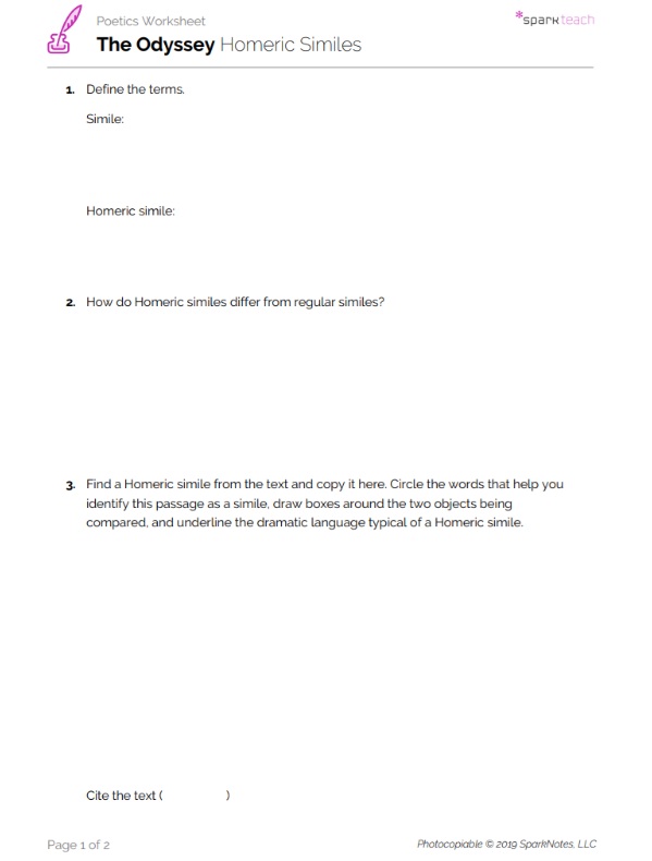 Pass out the Homeric Similes Worksheet. Have students fill in and compare the definitions on their worksheets (items 1-2).