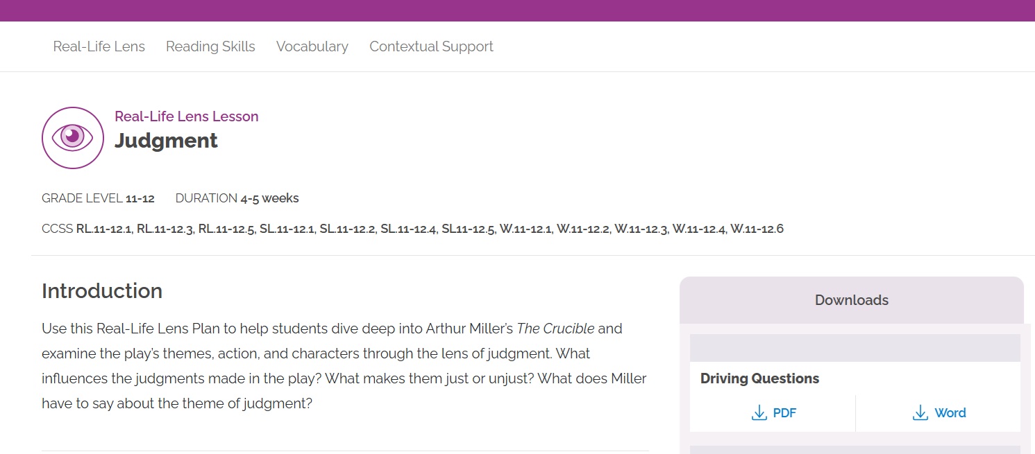 Students will use this worksheet to explore the numerous themes in The Crucible. They will work in groups to take notes on a chosen theme and then use their notes to develop a multimedia presentation summarizing their findings.