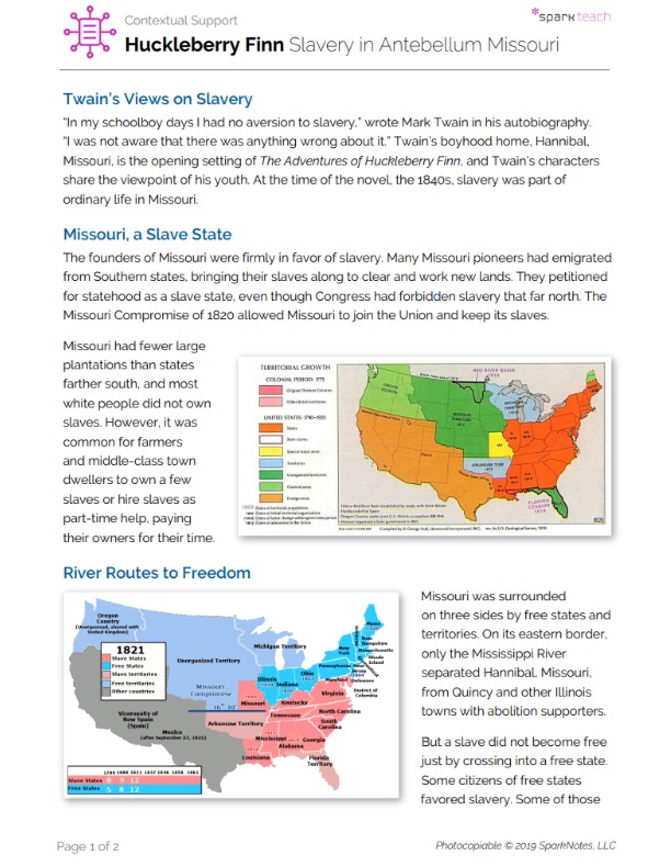 Mark Twain was an outspoken opponent of slavery, and his novel The Adventures of Huckleberry Finn echoes his deep convictions about the subject. This handout gives students important information on slavery in antebellum Missouri and explores the roles rivers and steamboats played in slaves’ lives. Use this handout to spark discussion and debate in your classroom before, during, or after your students read the text.