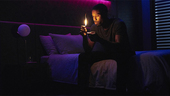 that she cannot scream. Her child, sitting next to her, watches