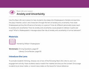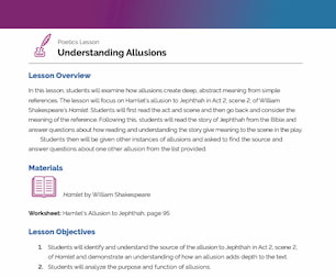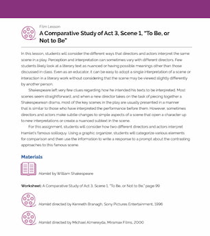 Students will use this worksheet to first identify the poetic and literary elements in the speech and then connect those elements to the thematic expressions revealed about Hamlet’s anxieties and inner conflict.