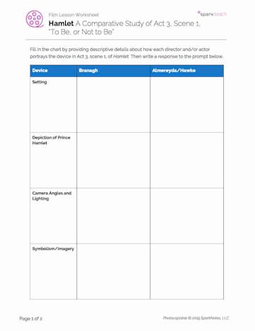 Have students watch another film adaptation of the same scene from Hamlet, such as the 2015 stage production directed by Robin Lough or Franco Zeffirelli’s Hamlet (1990). Then instruct students to include this scene in their comparisons.