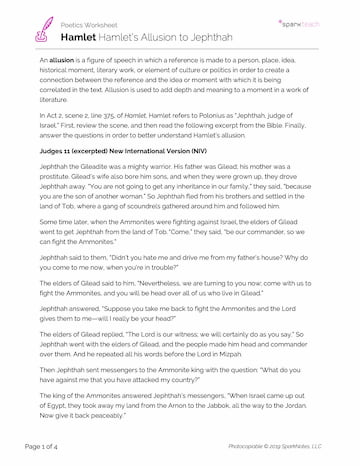 Pass out the Hamlet’s Allusion to Jephthah Worksheet and read the story.