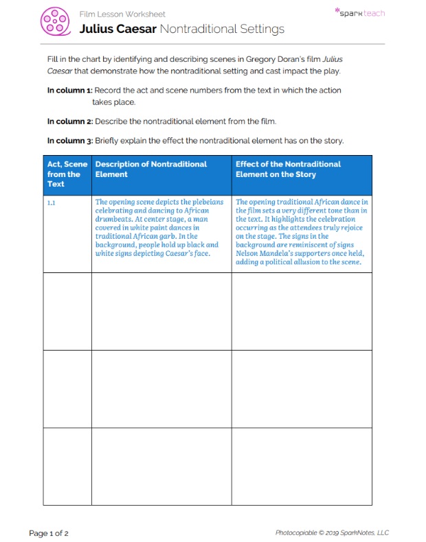 7. Have students watch Gregory Doran’s Julius Caesar and complete the chart.