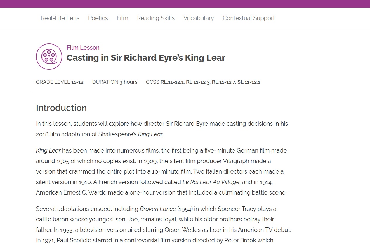 Students will use this worksheet to do a deep dive into the Fool, one of King Lear’s most beloved and fascinating characters, through observation, interpretation, and creative thinking about casting.