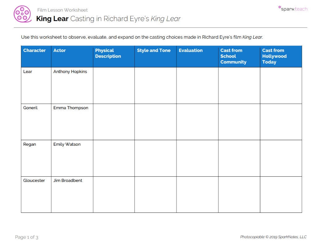 2. Pass out the Casting in Richard Eyre’s King Lear worksheet.