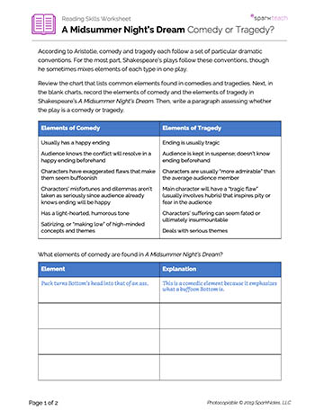 A Midsummer Night’s Dream is a comedy or a tragedy. Pass out this worksheet after they