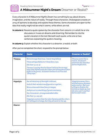 thoughts and words of major characters. In A Midsummer Night’s Dream, each character has