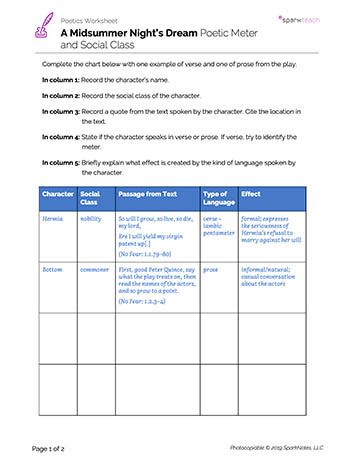2. Students will identify poetic meter and prose in A Midsummer Night’s Dream and understand how they are used to create contrast among social classes.