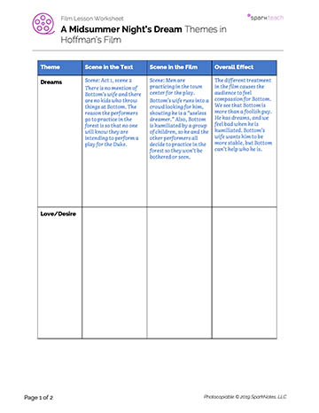 2. Students will identify the different ways the play’s key themes are expressed in Hoffman’s A Midsummer Night’s Dream versus in the text.