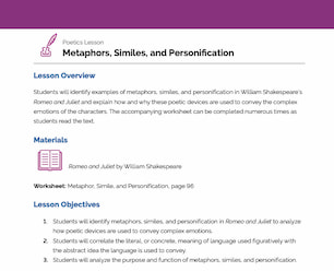 Each Poetics Lesson provides an in-depth exploration of a key poetic or literary device and features examples from the text that demonstrate the topic and provide a foundation from which students can work.