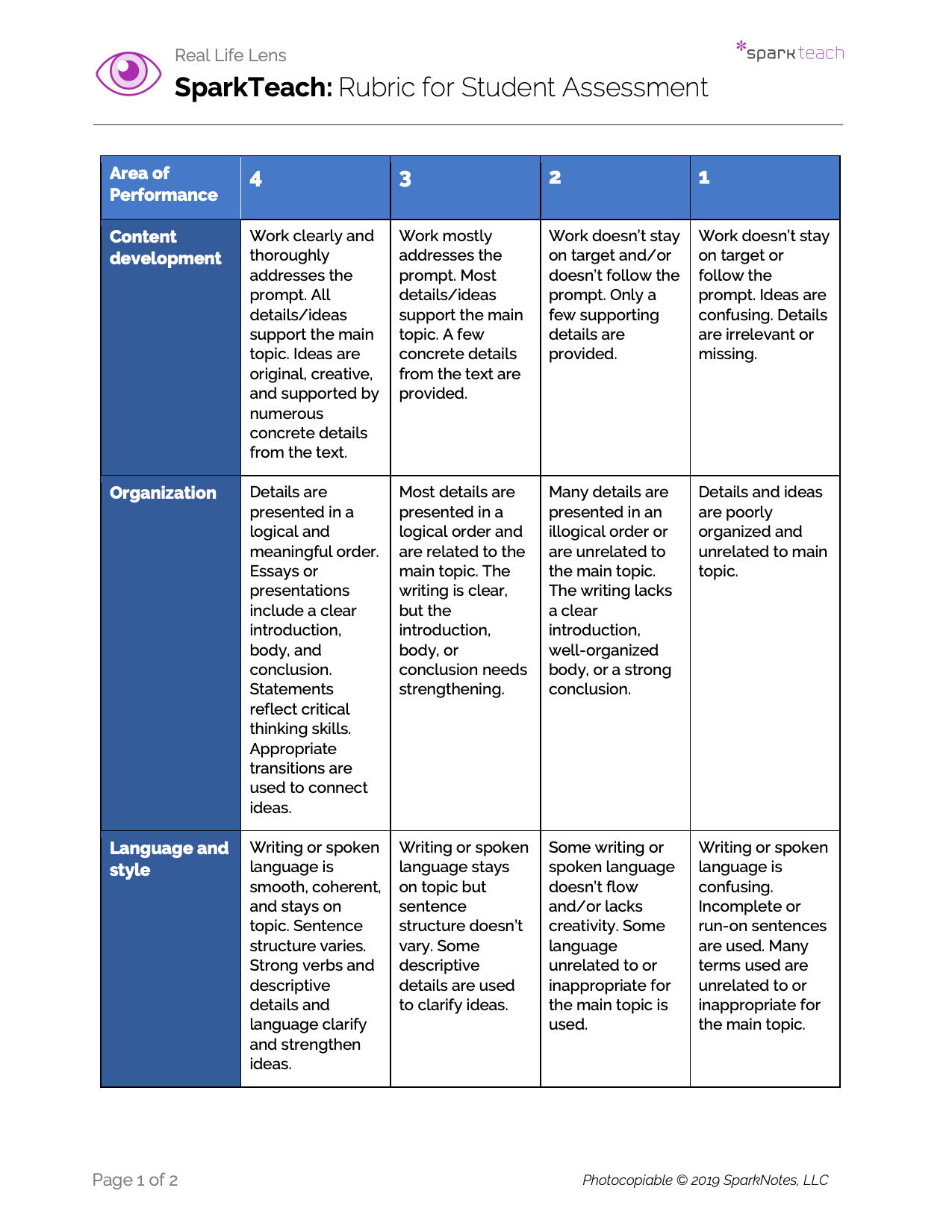 Use the Rubric for Student Assessment to evaluate student work on the lesson assignments.